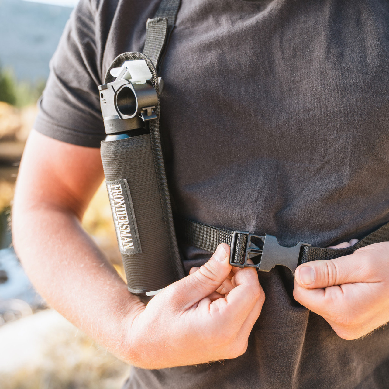 Náprsné (Chest Holster): Pomocou nastaviteľných popruhov si sprej upevníte priamo na hruď. Ide o najrýchlejší možný prístup v krízovej sekunde.