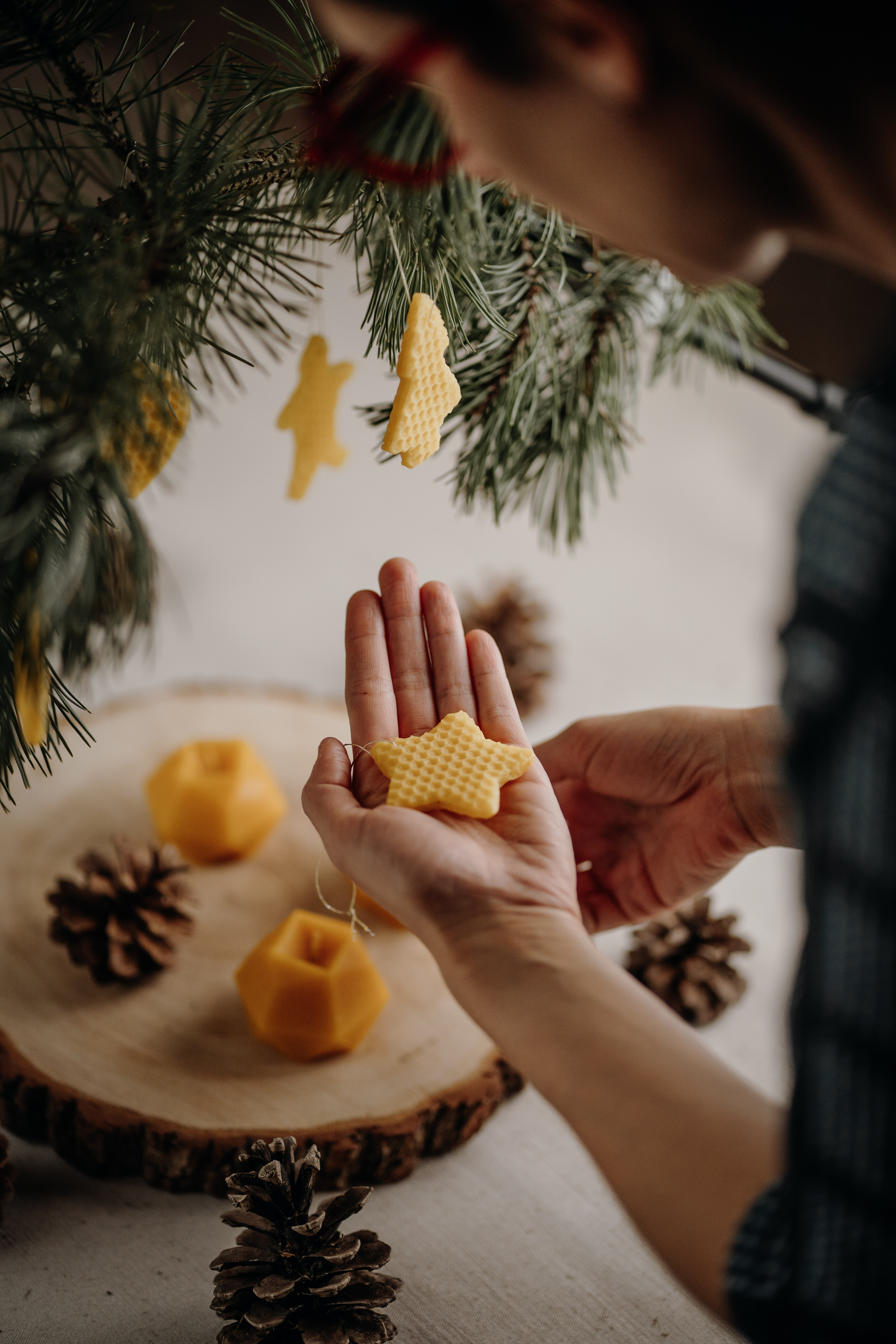 Nechajte sa na Vianoce uniesť so včelami! Tieto Včelozdôbky sú ručne vykrajované z čistých včelích plástov, vďaka jedinečnej štruktúre a zlatej farbe dodajú vianočnému stromčeku ozajstné čaro.